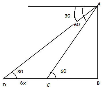 A straight highway leads to the foot of a tower. A man is standing at the top of the tower observes a car at an angle of depression 30°, which is approaching the foot of a tower with a uniform speed. Six seconds after, the angle of depression of the car is found to be 60° find the time taken by a car to reach the foot of the tower from this point.