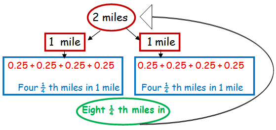 To find the (1/4)th miles of x miles, we have to multiply 4 by x.