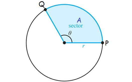 The ratio of the area of a sector to the area of the corresponding circle is always equal to the ratio of the central angle of the sector θ to the complete angle of the circle, that is 2π radians.
