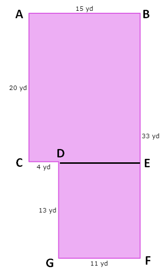 By drawing a horizontal line (FG) parallel to the side DC, we have divided the given polygon into two rectangles.