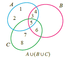 A u (B u C) = {1, 2, 3, 4, 5} u { 3, 4, 5, 6, 7, 8}