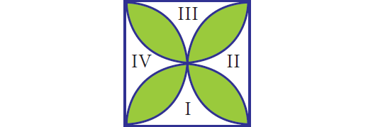 Mark the unshaded parts of the given figure as I, II, III and IV