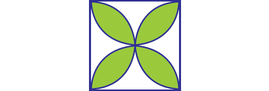 Find the area of the shaded region in the square of side 10 cm as shown below (Use π ≈ 3.14).