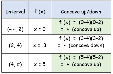 At x = 2, the curve changes its sign, it changes from concave up to concave down.