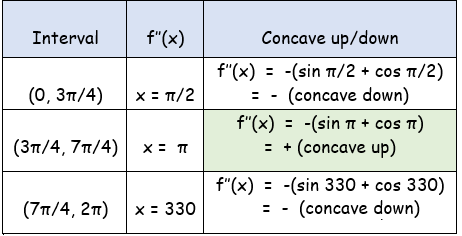 At x = 7π/4, the curve changes its sign, it changes from concave up to concave down.