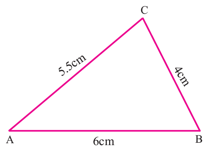 Construct triangle ABC whose sides are AB = 6 cm, BC = 4 cm and AC = 5.5 cm and locate its orthocenter.