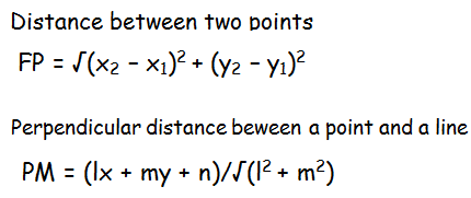 We can use the following formulas to find the distance between fixed point (F) and moving point(P) and the perpendicular distance between the moving point (P) and directrix (a fixed line).