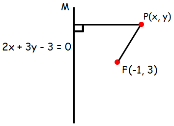Let P (x, y) be any point on the parabola. If PM is drawn perpendicular to the directrix respectively.