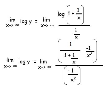 lim x ->∞ log y = lim x ->∞ log (1 + (1/x)) / (1/x)