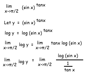 lim x->π/2 log y = -sin(π/2) cos(π/2)
