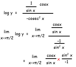 lim x->π/2 log y = lim x->π/2 (- sinx cosx)