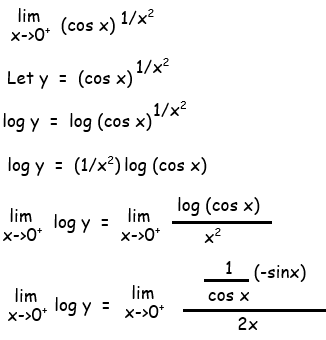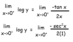 lim x->0+ log y = ∞/∞ (Indeterminant form)