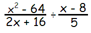 = [(x + 8)(x - 8)/2(x + 8)] ÷ [(x - 8) / 5]