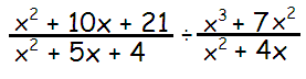 = [(x + 3)(x + 7)/(x + 1)(x + 4)] ÷ [ x2(x + 7) / x(x + 4)]