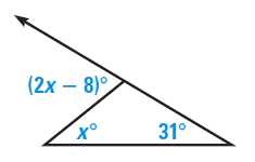 ∠B = 5X + 15 = 5(13) + 15 = 65 + 15 = 80 |