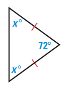14) Find the measures of the angles of an isosceles triangle if the measure of the vertex angle is 40 degrees less than the sum of the measures of the base angles.