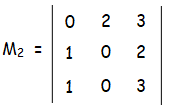 M2 = 0(0 - 0) - 2(3 - 2) + 3(0 - 0)