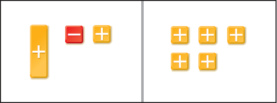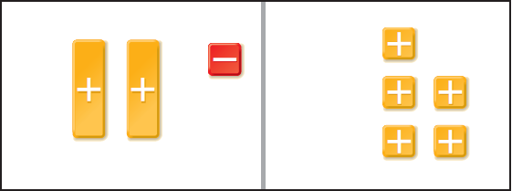 In the above picture, on the left side, we just have one x-tile and on the right side, we have five +1-tiles. So, one x-tile is equivalent to five +1-tiles.