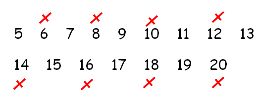 Now we have to mark the even numbers, because even numbers are divisible by 2.