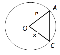 AC has a length of 10 and r, the radius is 7. What is x ?