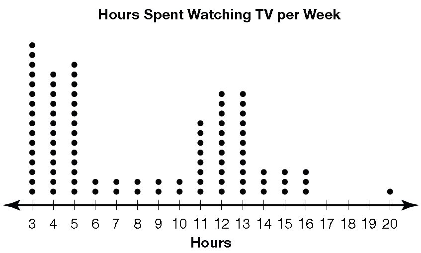 Maria took a school survey to find out how many hours per week students watch television. Her results are in the dot plot below.