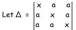 (iv) A square matrix (or its determinant) is said to be in cyclic symmetric form if each row is obtained from the first row by changing the variables cyclically.
