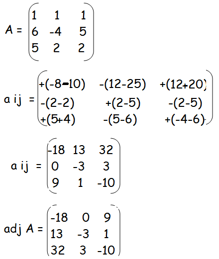 |A| = 1(-8 - 10) - 1(12 - 25) + 1(12 + 20)