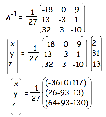 Hence the values of x, y and z are 3, -2 and 1 respectively.