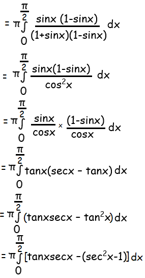 = π[sec(π//2)-tan(π/2)+(π/2) - (sec0-tan0+0)]