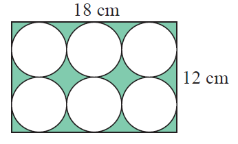 6 identical metal discs are stamped out of an 18 cm by 12 cm sheet of copper as illustrated. What percentage of the copper is wasted