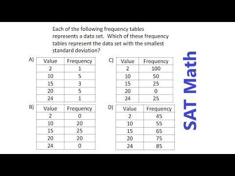 Each of the following frequency tables represents a data set. Which of these frequency tables represent the data set with the smallest standard deviation?