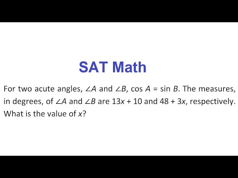 For two acute angles, ∠A and ∠B, cos A = sin B. The measures, in degrees, of ∠A and ∠B are 13x + 10 and 48 + 3x, respectively. What is the value of x?