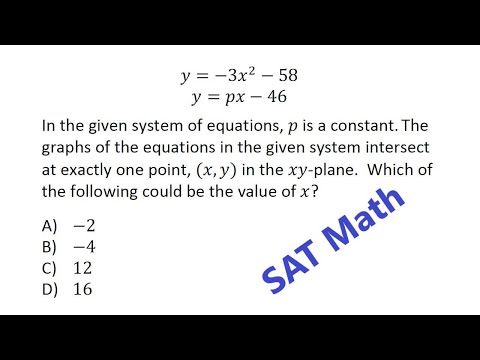 In the given system of equations, p is a constant. The graphs of the equations in the given system intersect at exactly one point, (x, y) in the xy-plane. Which of the following could be the value of x?