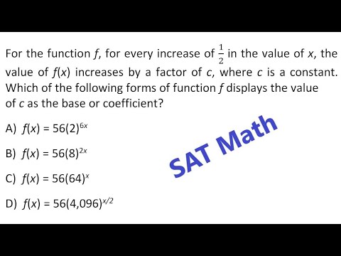 For the function f, for every increase of 1/2 in the value of x, the value of f(x) increases by a factor of c, where c is a constant. Which of the following forms of function f displays the value of c as the base or coefficient?
