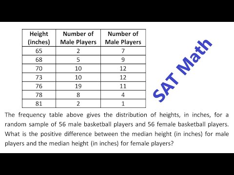 The frequency table above gives the distribution of heights, in inches, for a random sample of 56 male basketball players and 56 female basketball players. What is the positive difference between the median height (in inches) for male players and the median height (in inches) for female players?