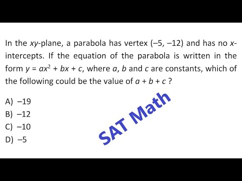 In the xy-plane, a parabola has vertex (–5, –12) and has no x-intercepts. If the equation of the parabola is written in the form y = ax2 + bx + c, where a, b and c are constants, which of the following could be the value of a + b + c ?