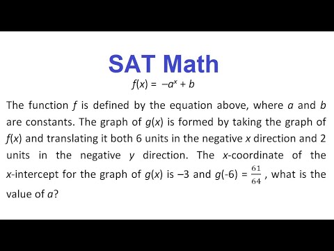 The function f is defined by the equation above, where a and b are constants. The graph of g(x) is formed by taking the graph of f(x) and translating it both 6 units in the negative x direction and 2 units in the negative y direction. The x-coordinate of the x-intercept for the graph of g(x) is –3 and g(-6) = 61/64 , what is the value of a?