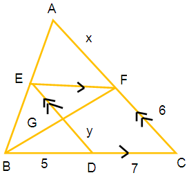 (7) In the figure, the sides DE and BC are parallel and (AD/B) = 3/5, calculate the value of