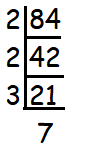 Prime factors of 84 are 2 ⋅ 2 ⋅ 3 ⋅ 7