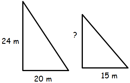 An electric pole, 24 meters high casts a shadow of 20 meters. Find the height of a tree. If it casts a shadow of 15 meters under similar conditions