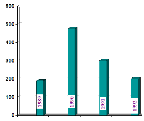 From the above bar graph, we come to know that the bookshop has sold about 450 books in the year 1990