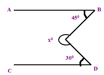 Find the value of x ° if the lines AB and CD are parallel to each other
