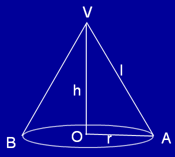 VO is the height h and OA is the base radius r VA is the slant height l.