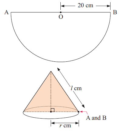 (a) When we rotate the semicircular shape into cone, the radius will become slant height.