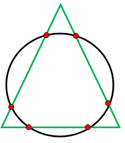 From the picture, there are 6 points can intersect both circle and triangle.