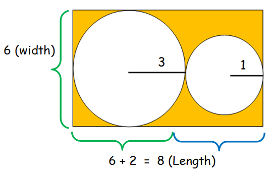 In order to find the area of shaded region, we have to subtract the areas of two circles from the area of rectangle.