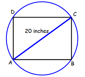 (18) A rectangle is inscribed in a circle. The rectangle is tangent at the points A, B, C and D. If the diagonal of the rectangle is 20 inches long. What is the are of the circle ?