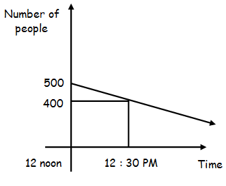 (8) The straight line graph shows how many people are in a large cafeteria eating lunch at different times. If the people leave at a steady rate, at what time will oly 150 people remain?