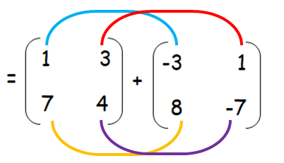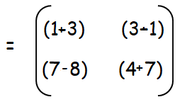Addition or subtraction of two matrices can be done by simplifying the corresponding terms in the matrix.