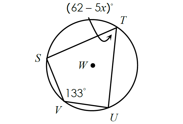 Since the quadrilateral STUV is inscribed in a circle, its opposite angles are supplementary.